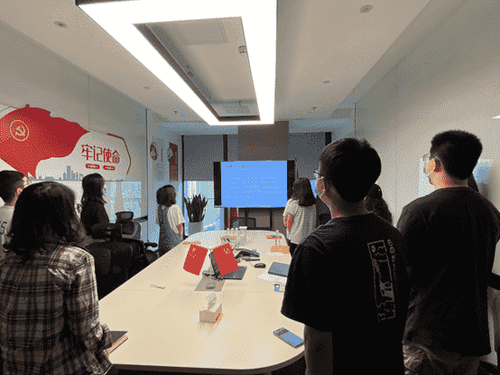 而后,,,,全体党员一起重新学习了解了目前的入党流程要求,,,各支部也将在后续工作中进一步发挥支部职能,,做好发展党员工作。。。最后,,全体党员面向党旗,,重温入党誓词。。