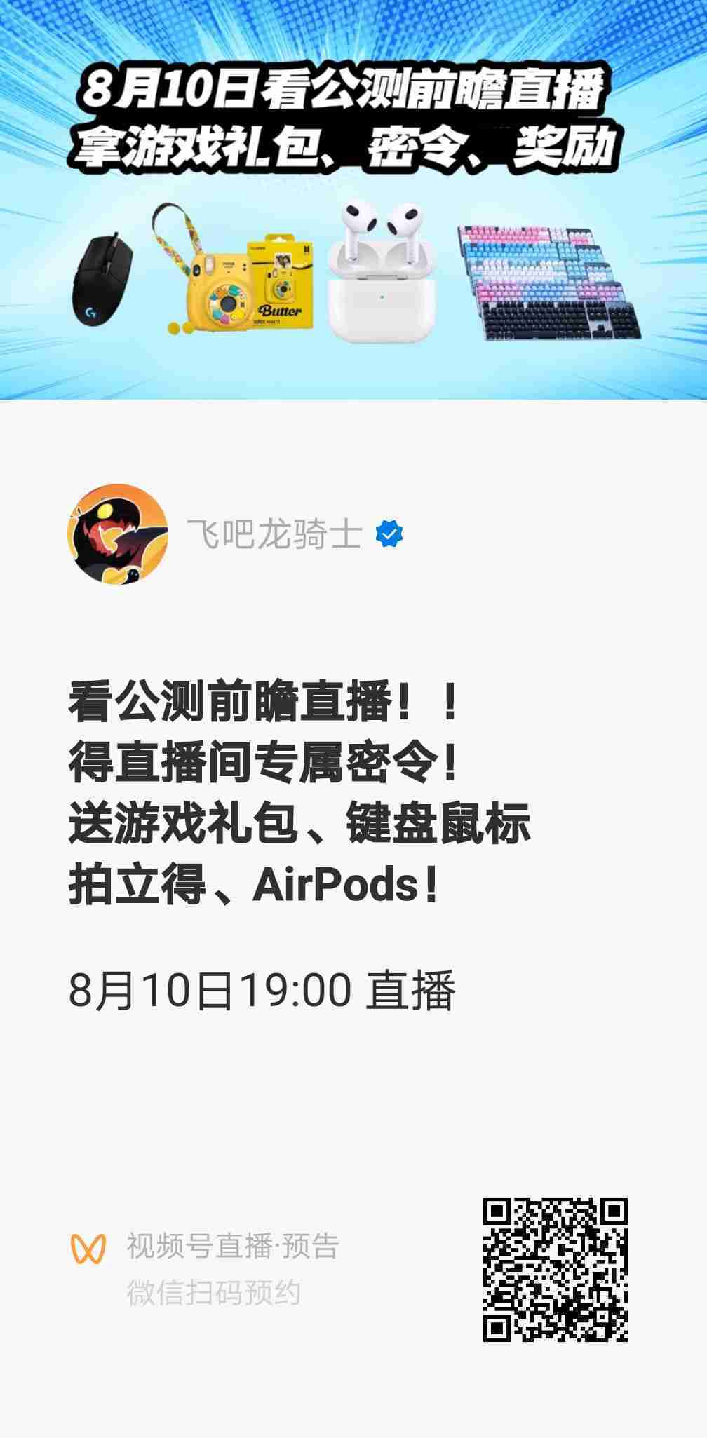 更多内容,,玩家可以于8月10日晚19::00前往官方微信视频号、、、官方TapTap号两大平台观看公测前瞻直播,,超多游戏内容介绍、、、、公测活动提前曝光,,,,还有超值礼包专场为冲榜福利层层加码!!!!